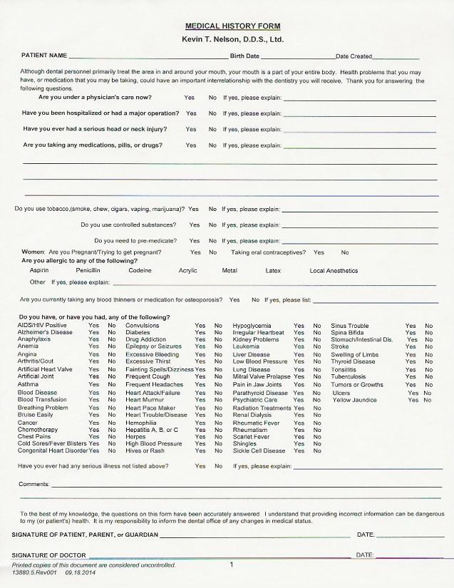 - Dental History Form